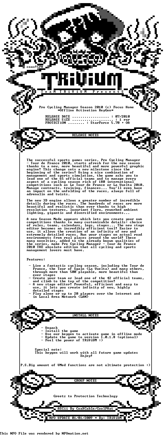 ISO | DVD | Desarrolladora: Cyanide | Distribuidora: Digital Bros | Idioma: Multi5 Español | Numero de jugadores: 1 | Plataforma: PC/XBOX360/PSP | Genero: Carreras/ Competencias | Tematica: Deportes | Edad recomendada(PEGI): 3+ | 2010 | 3.44GB | Medicina: TRIVIUM | NFO
